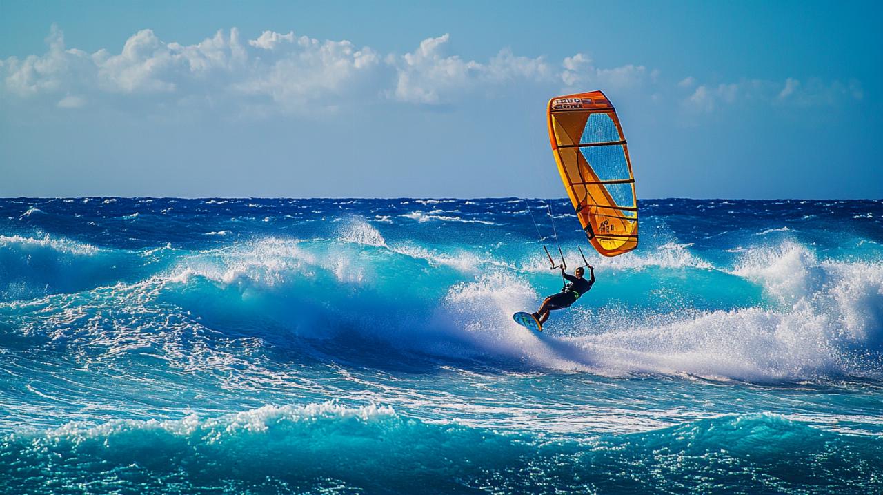 Les planches plus compactes réagissent plus vite aux appuis et permettent des manœuvres engagées : virements dynamiques, sauts ou navigation rapide. Le choix dépend aussi du vent. Par conditions soutenues, une planche plus petite se contrôle mieux. À l’inverse, par vent léger, un volume supérieur facilite le décollage et le maintien en vol.